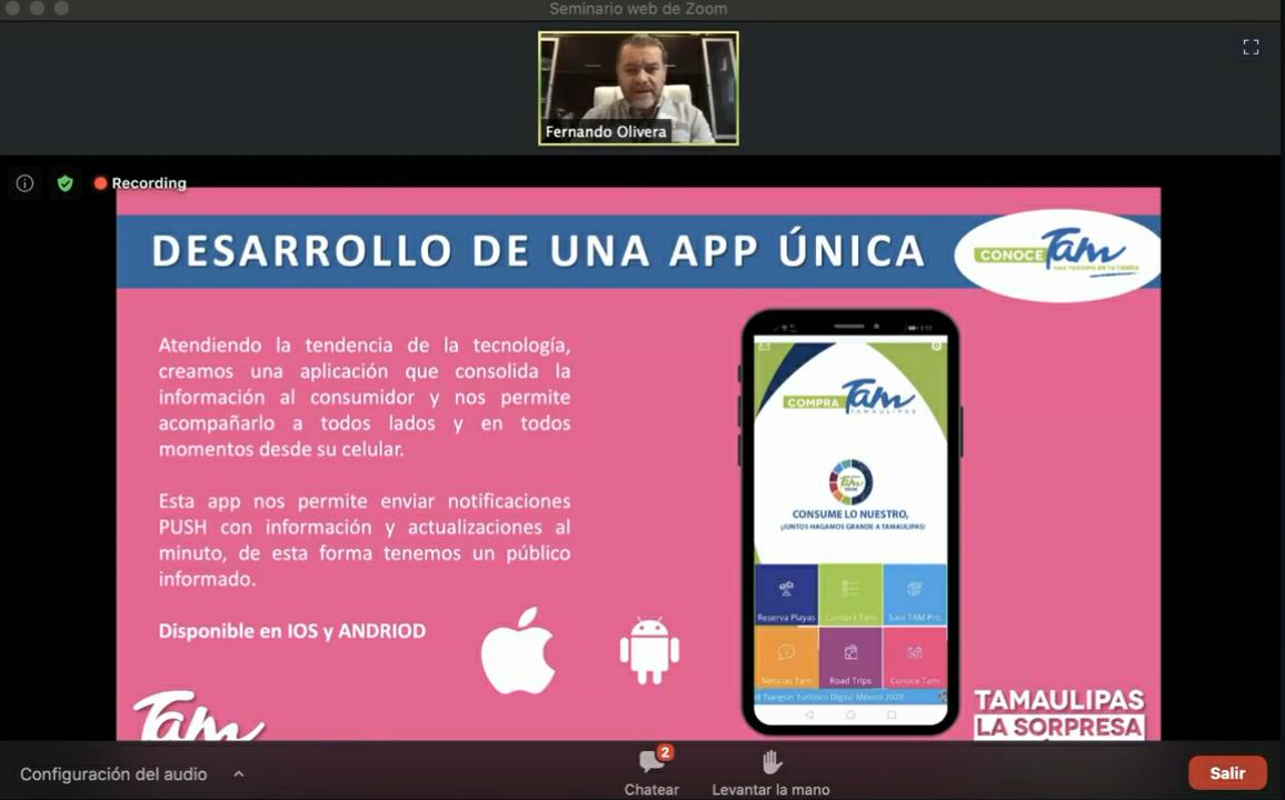 Dentro de la conferencia de prensa, Olivera Rocha compartió también los beneficios que brindará la aplicación “Compra Tam”, la cual es gratuita y se encuentra para descarga en el sistema IOS y Android. Permitiendo así la difusión de los atractivos turísticos de Tamaulipas, a través de la implementación de tecnologías vanguardistas que brindarán al turista todo lo que necesita en un mismo lugar.